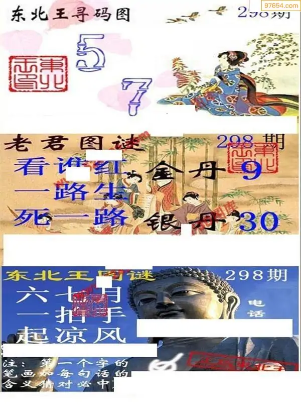 福彩3D25298期蓝仙子一句定三码图谜