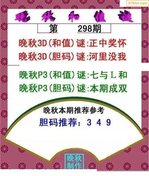25298期晚秋和值谜胆码推荐