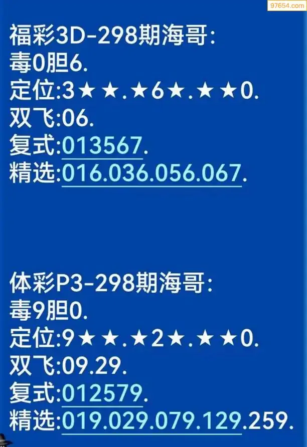 海哥福彩298期3d今日双胆