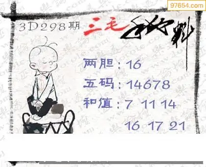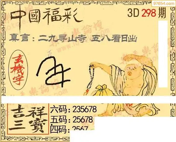 25298期福彩3D正版天宇和值谜
