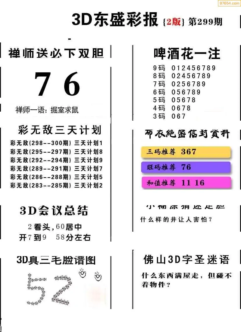 福彩3D300期天牛彩吧套图整合总汇
