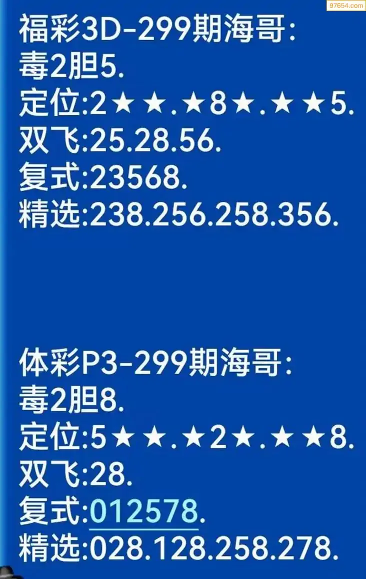 海哥福彩299期3d今日双胆