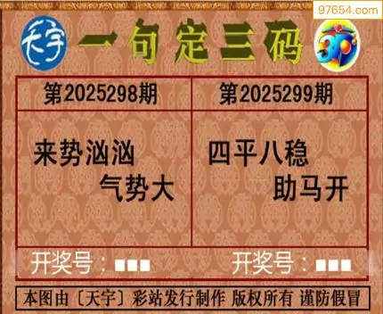 25299期天宇一句定三码3D图库