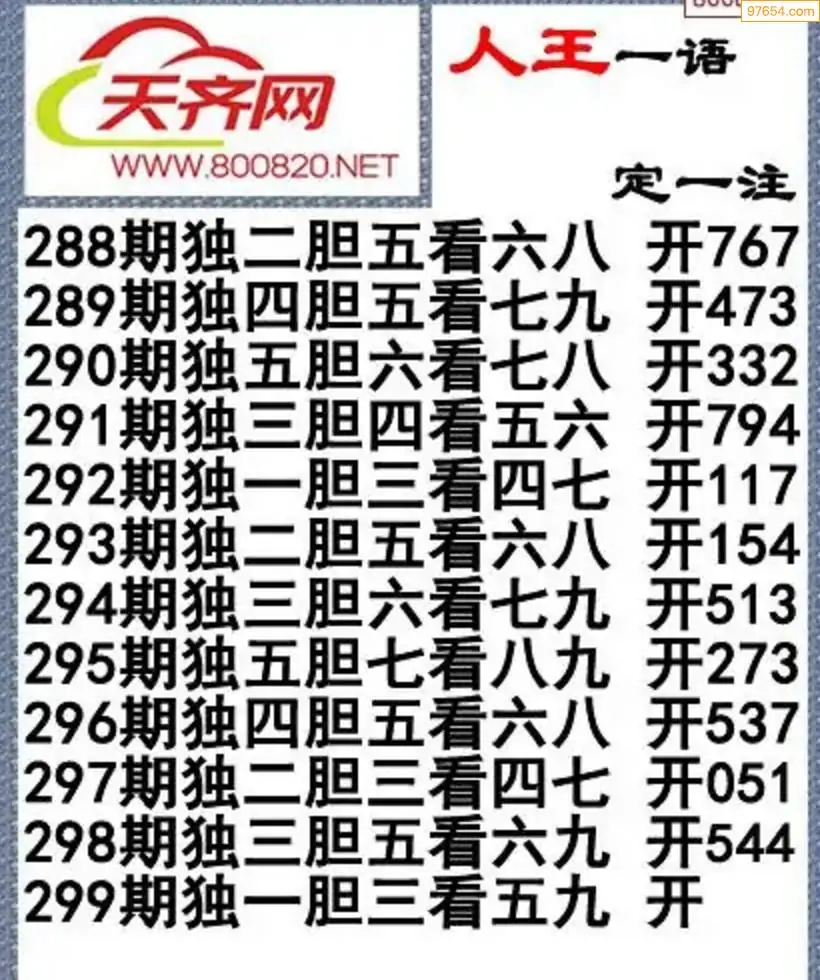 福彩3d左岸清风25年299期一语定一注
