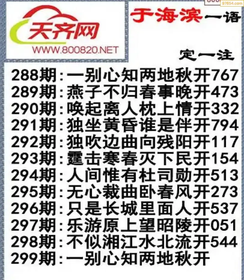 25年299期3D诗歌财神一语定一注