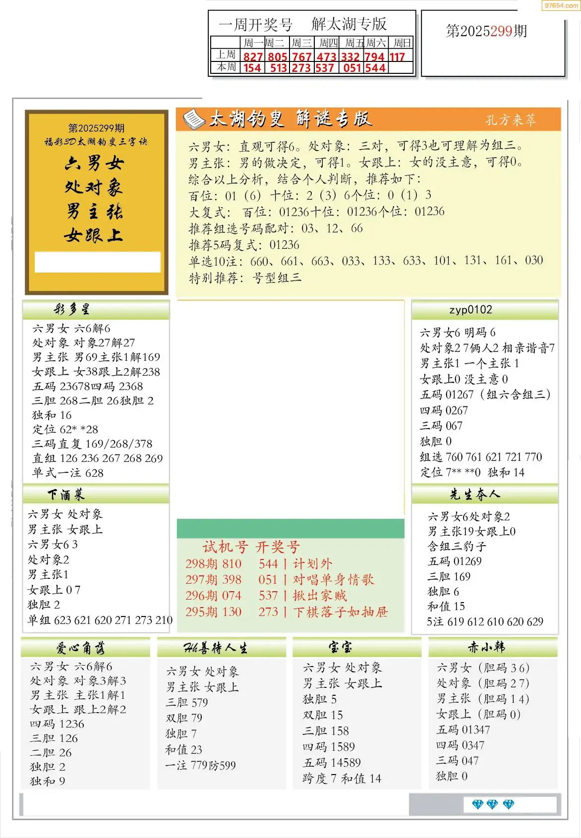 福彩3D300期天牛彩吧套图整合总汇
