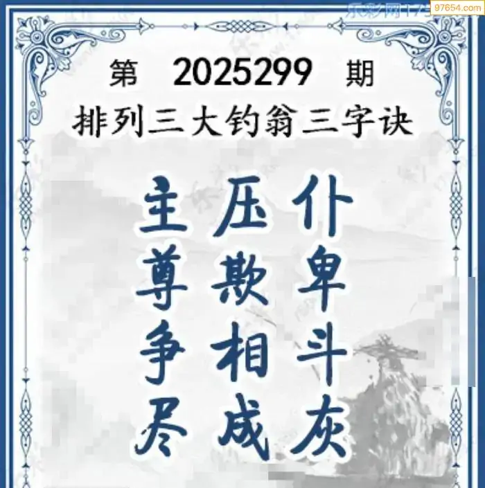 25年体彩p3第299期大钓翁三字诀