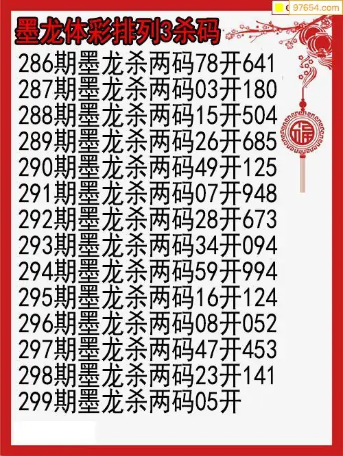25年299期墨龙体彩排列三杀码图
