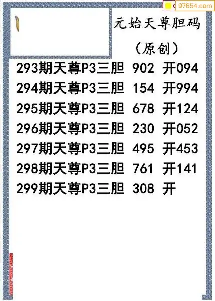 25299期元始天尊排列3胆码图