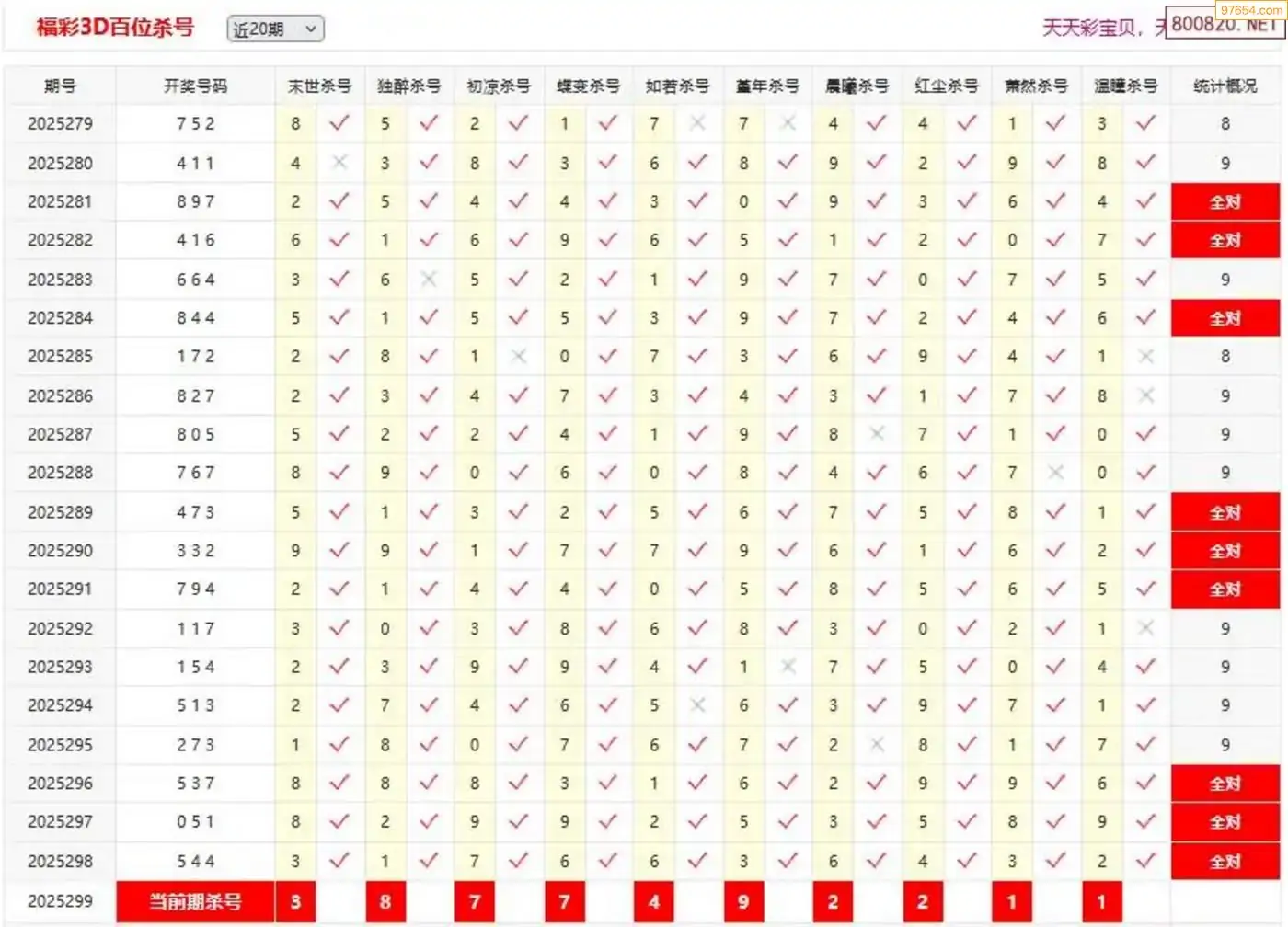 25-299期福彩3d桂子飘香杀码预测 12连中