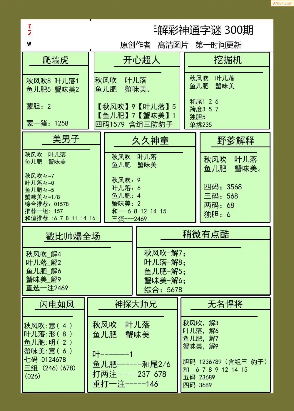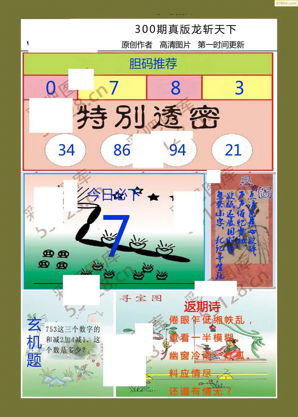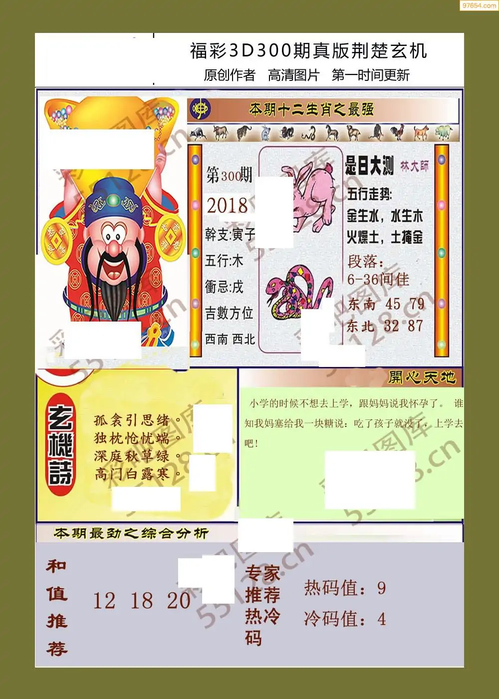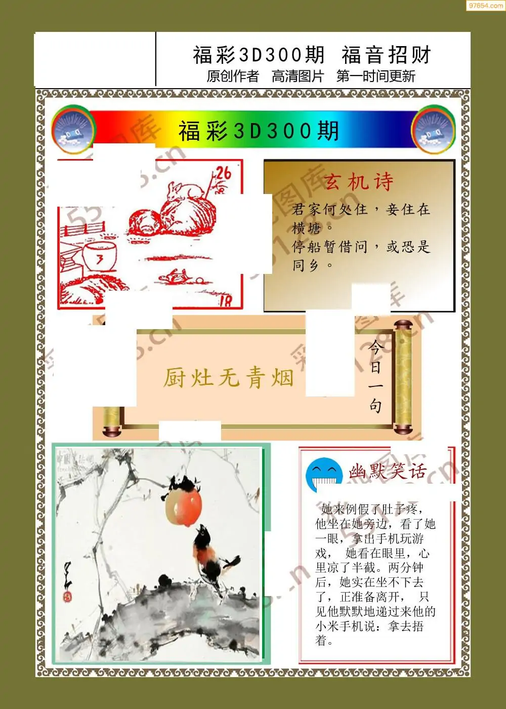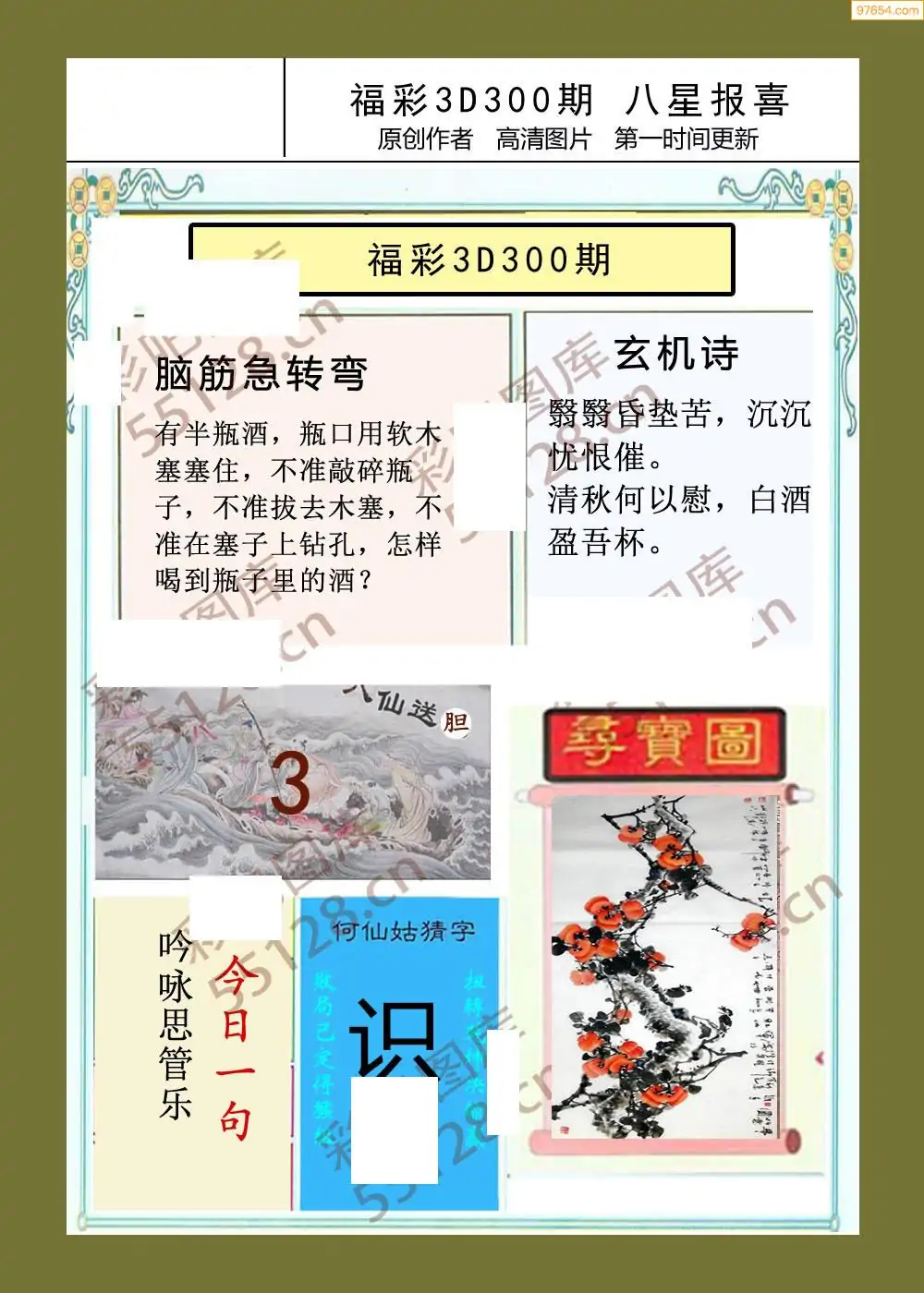 300期福彩天机壁怪字图