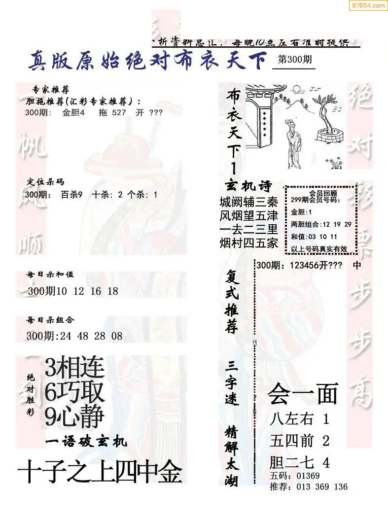 300期真精布衣3d正版布衣123456(原创)