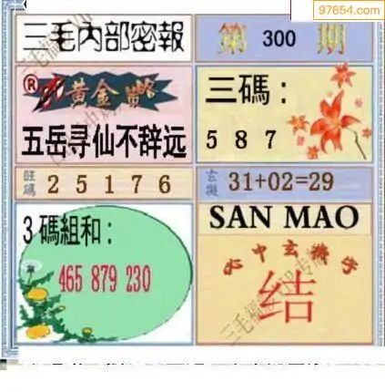 (8)25年300期今日3d各类彩报汇总