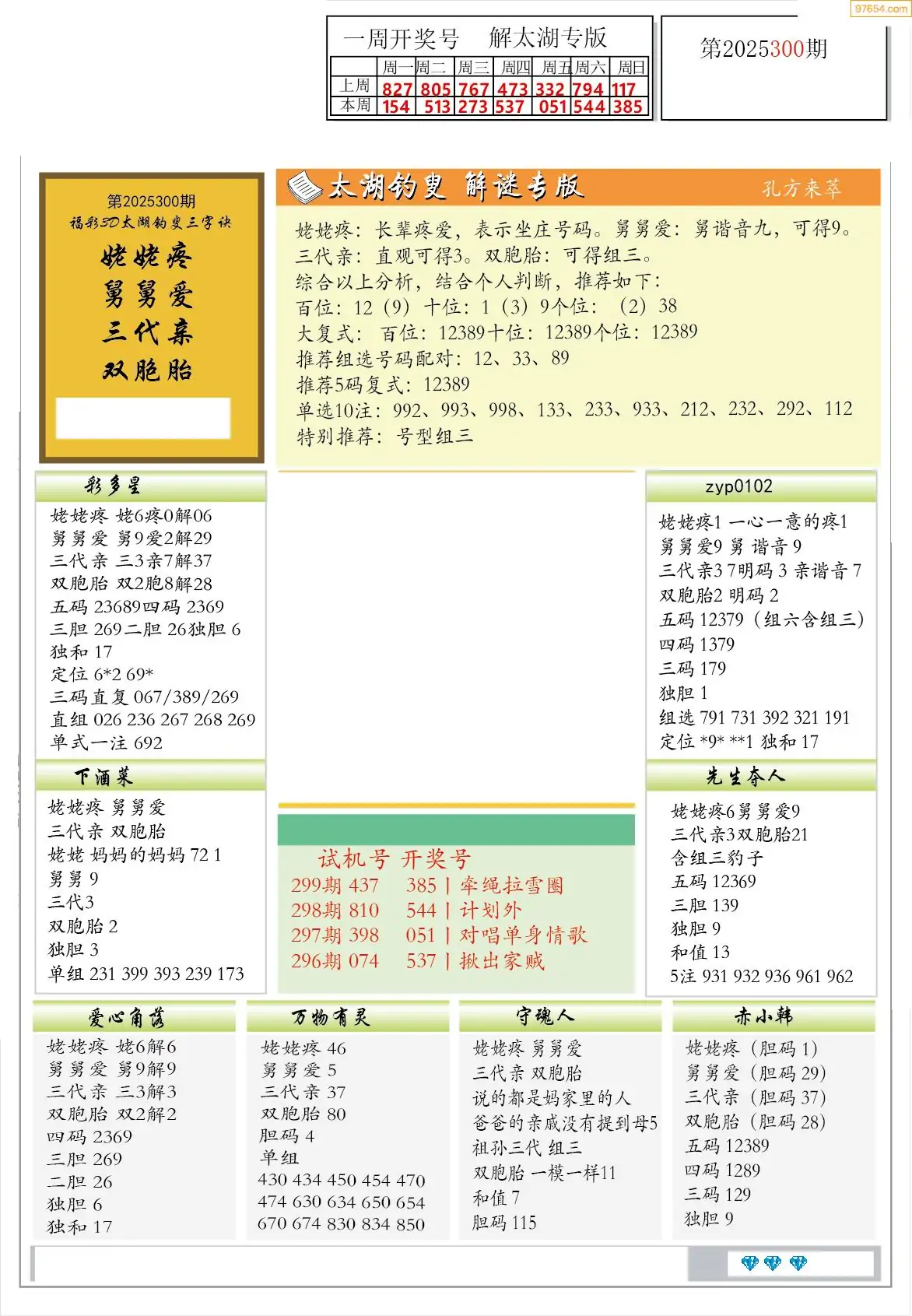 (2)25年300期本期3d图迷汇总