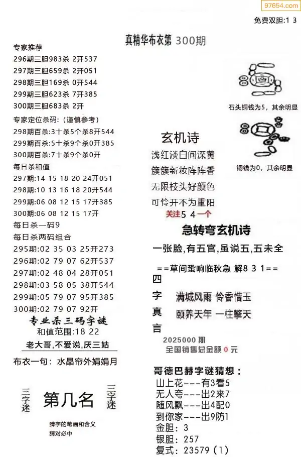 (1)25年300期今日3d图谜总汇