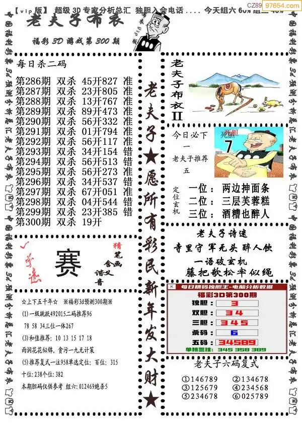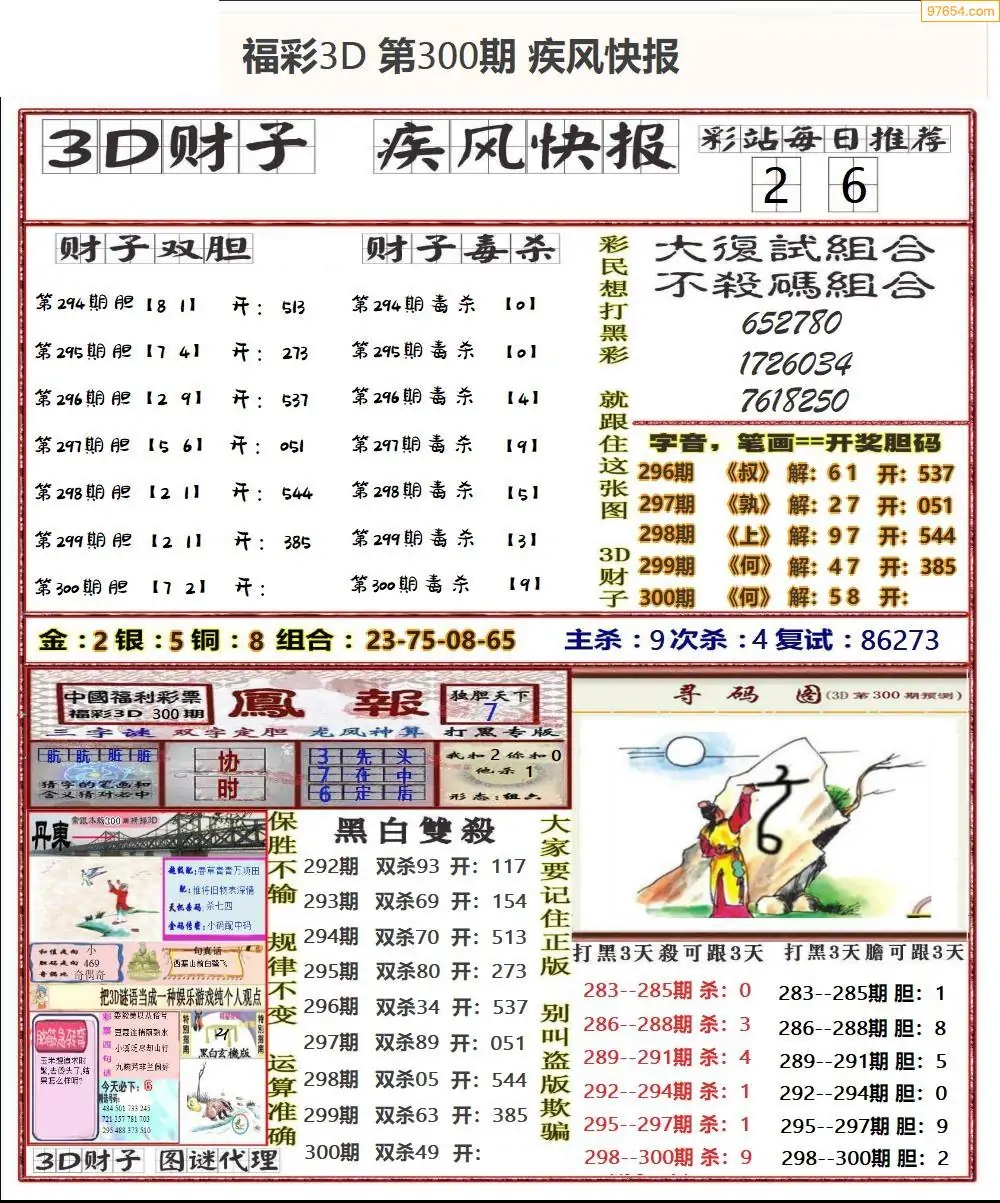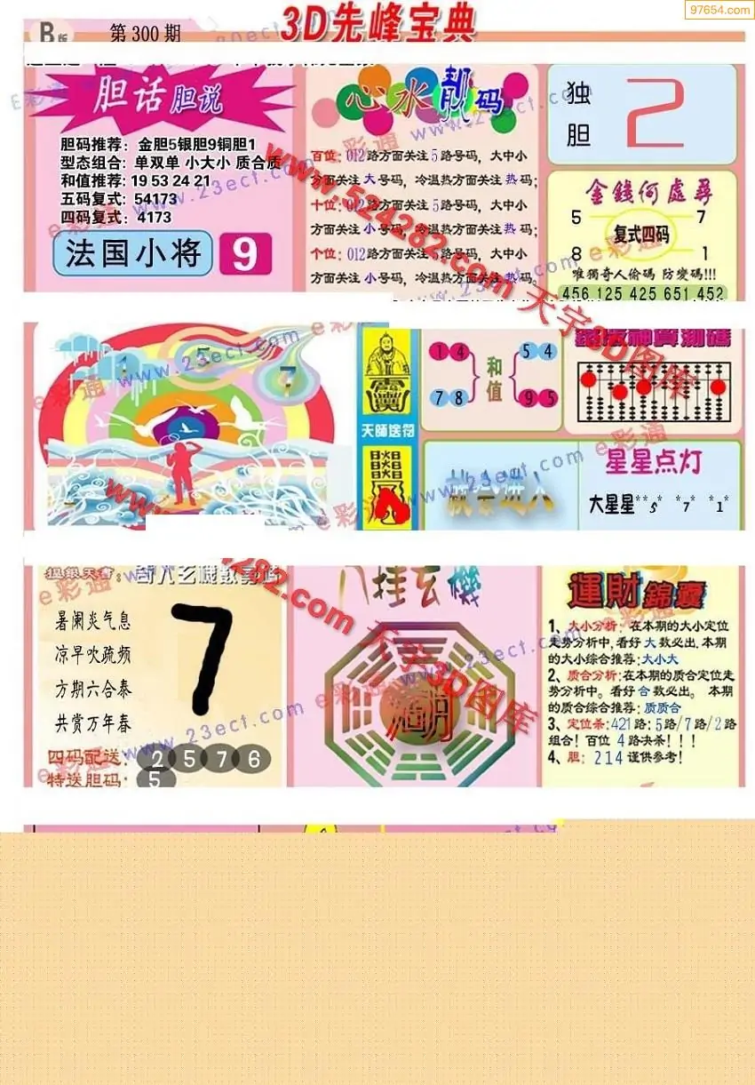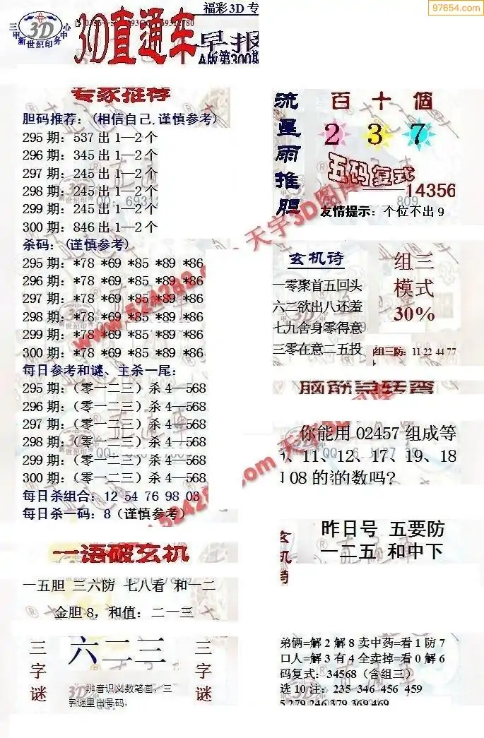 (8)25年300期今日3d各类彩报汇总