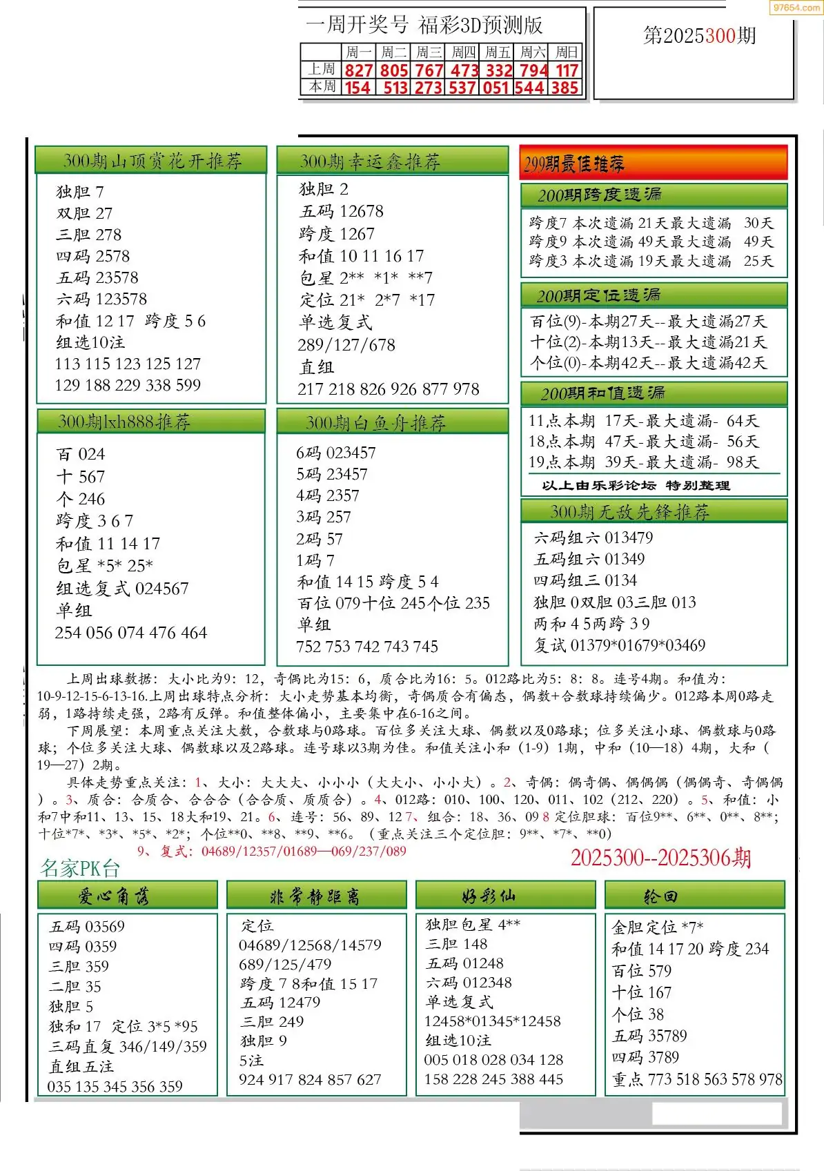 (3)2025300期3D预测总汇全图