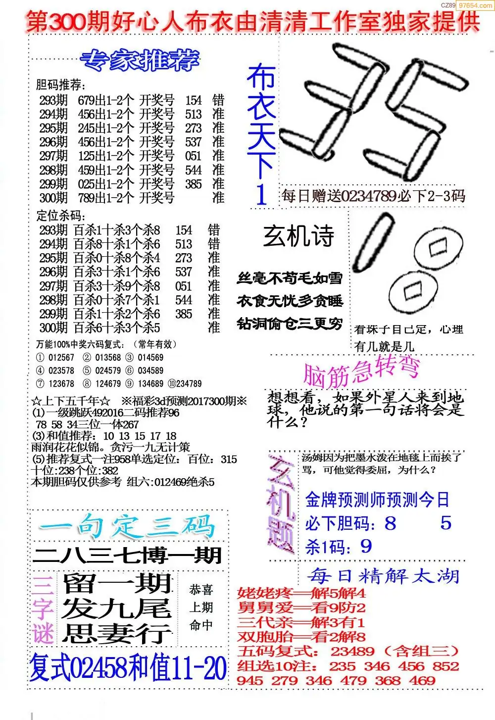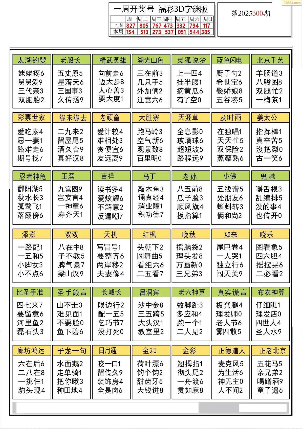 (5)25年300期福彩字谜图谜总汇