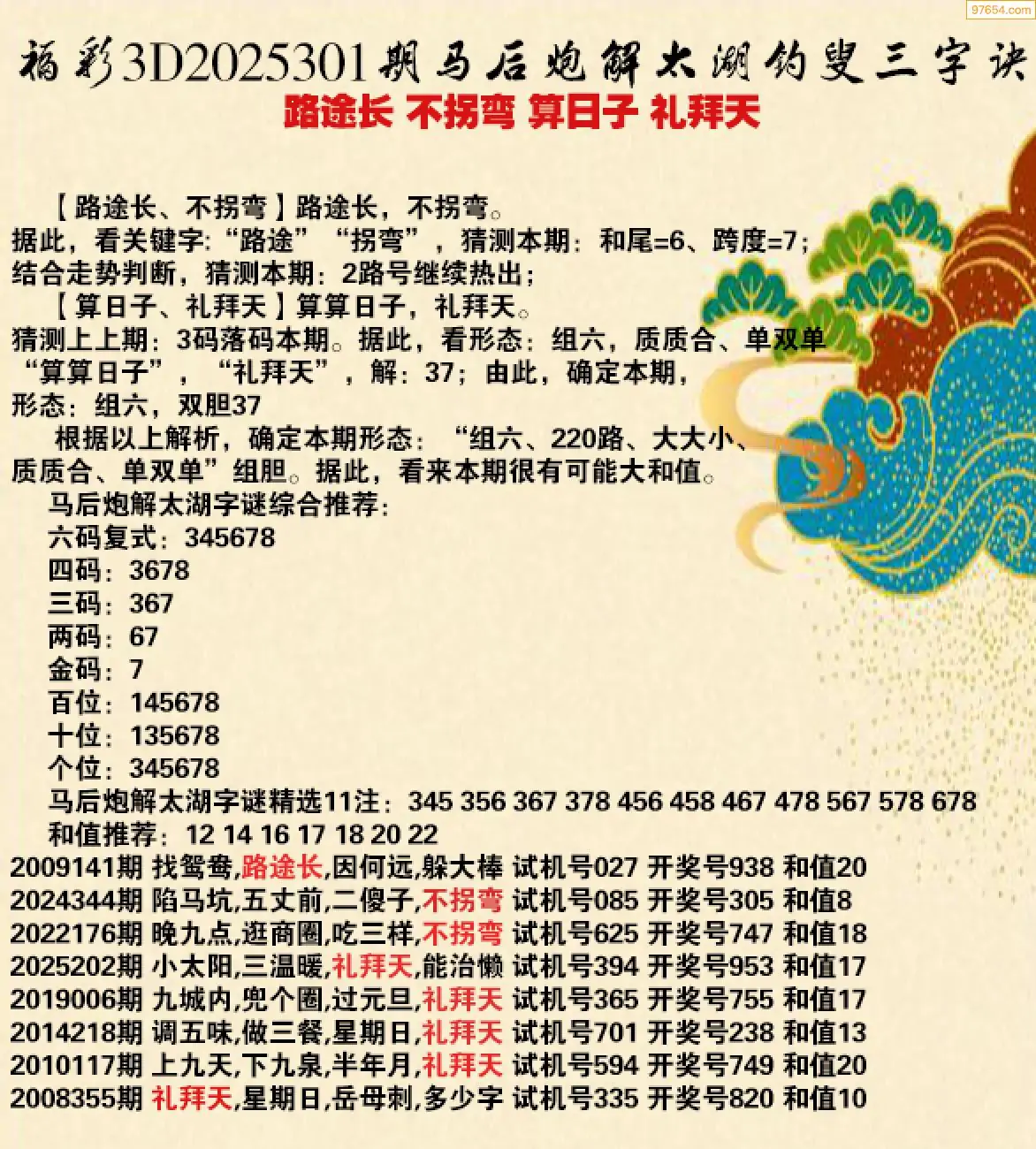 25301期福彩3d太湖钓叟三字诀历史汇总