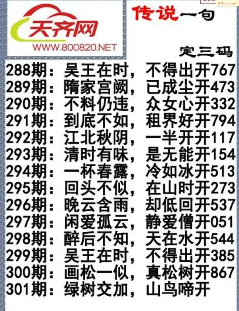 301期3D晚秋(乙种和值)谜:双十之时 D:和尾同生