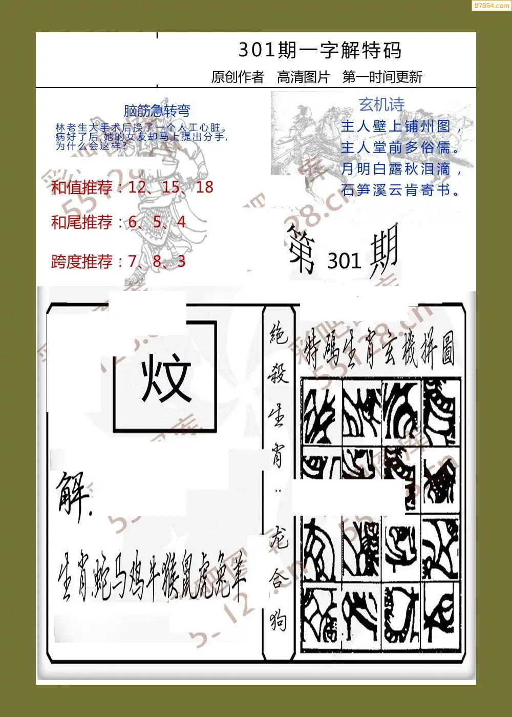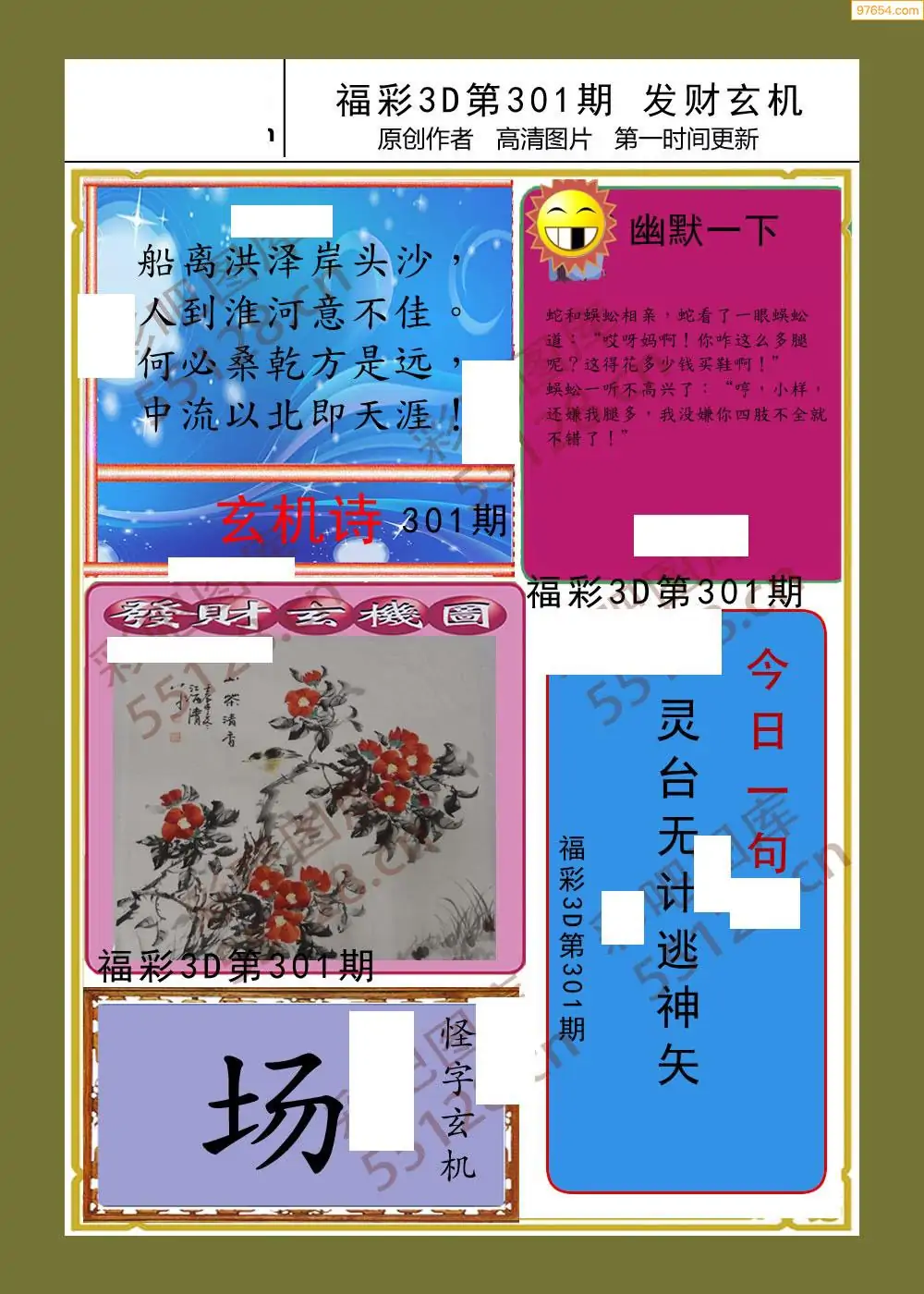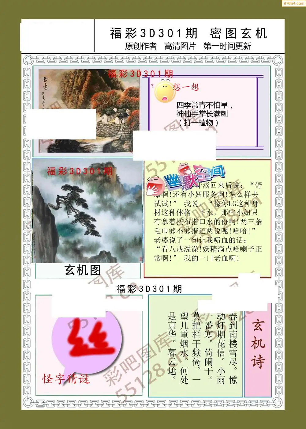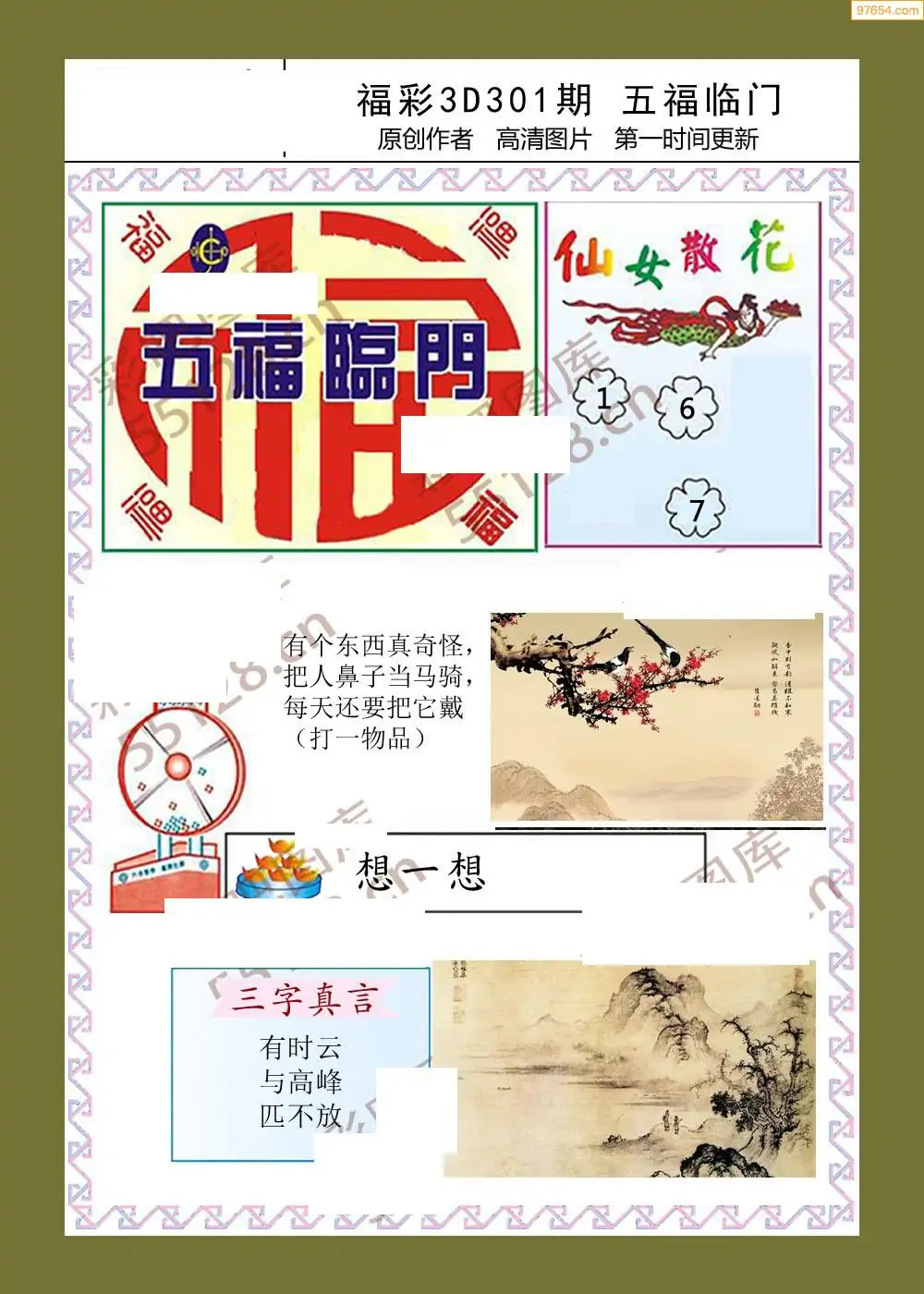 (5)25年301期福彩字谜图谜总汇