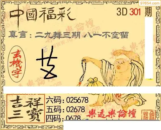 2025年301期福彩3d怪字神贴