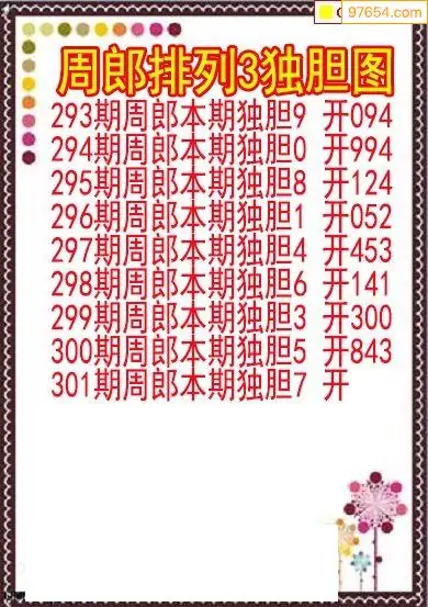 25301期排列3周郎本期独胆图