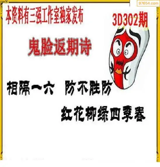 2025年302期福彩3d怪字神贴