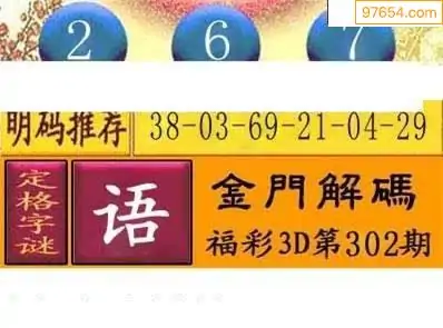 25302期福彩3D正版天宇和值谜