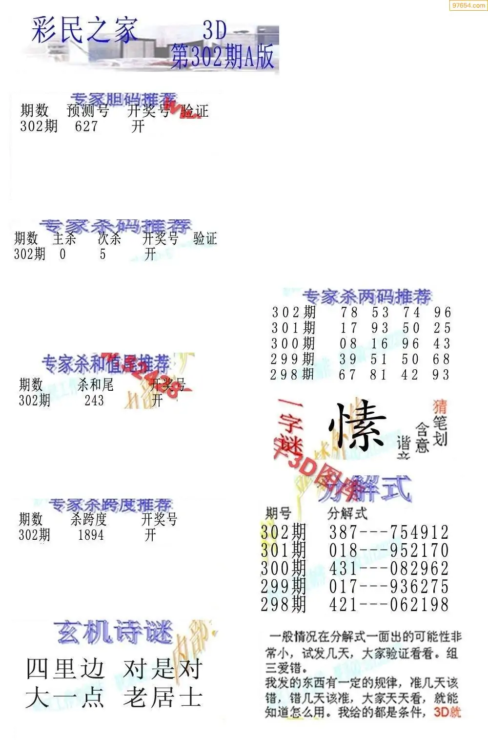 25302期3D彩民各类资料A版