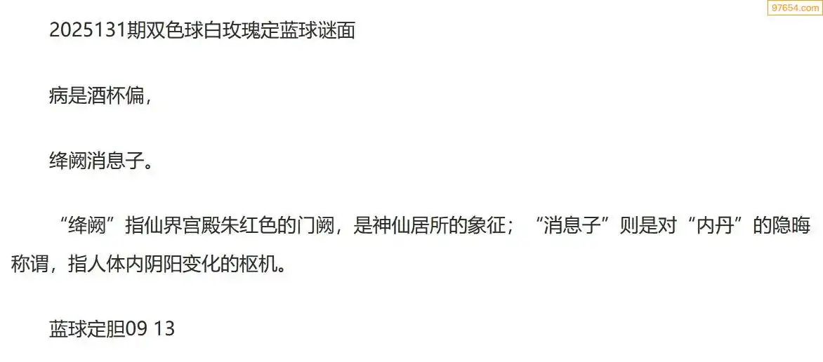 白玫瑰双色球25年131期定蓝球字谜