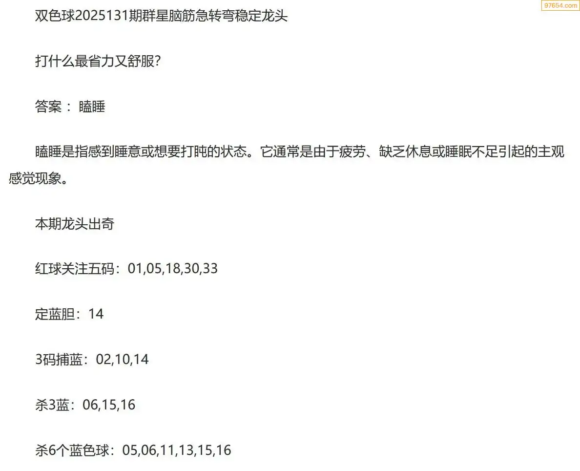 群星双色球25年131期脑筋急转弯龙头谜语