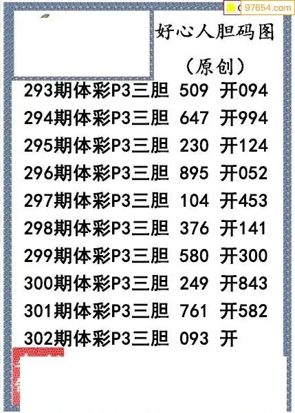 25302期好心人送胆排列三图谜