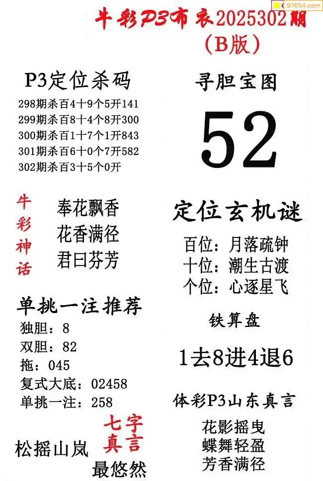 2025302期彩友图迷汇总