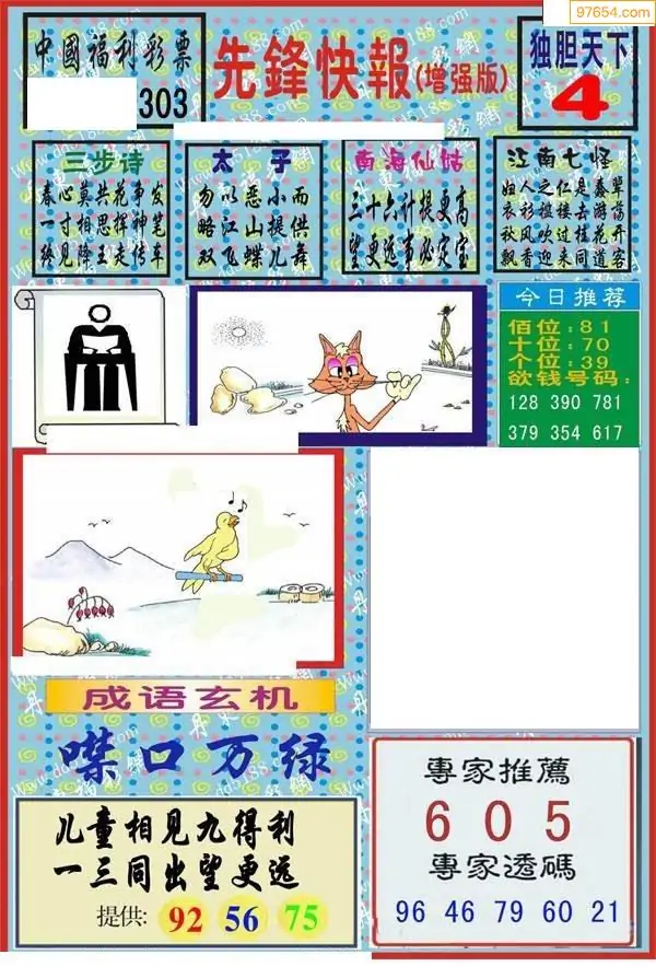 25年303期一点通全版彩报图