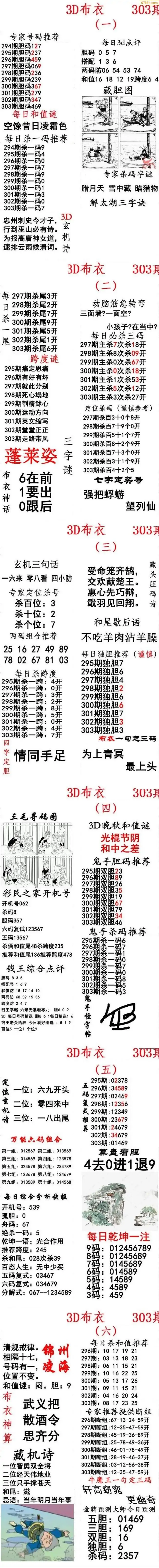 福彩303期3d真精华布衣+布衣早报(转载)