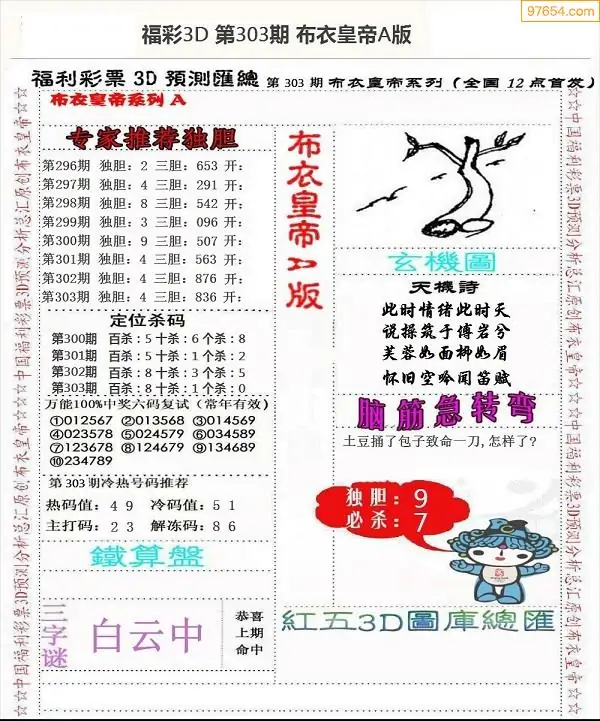 25302期3d新布衣皇帝早间四版