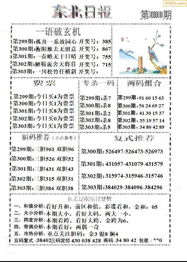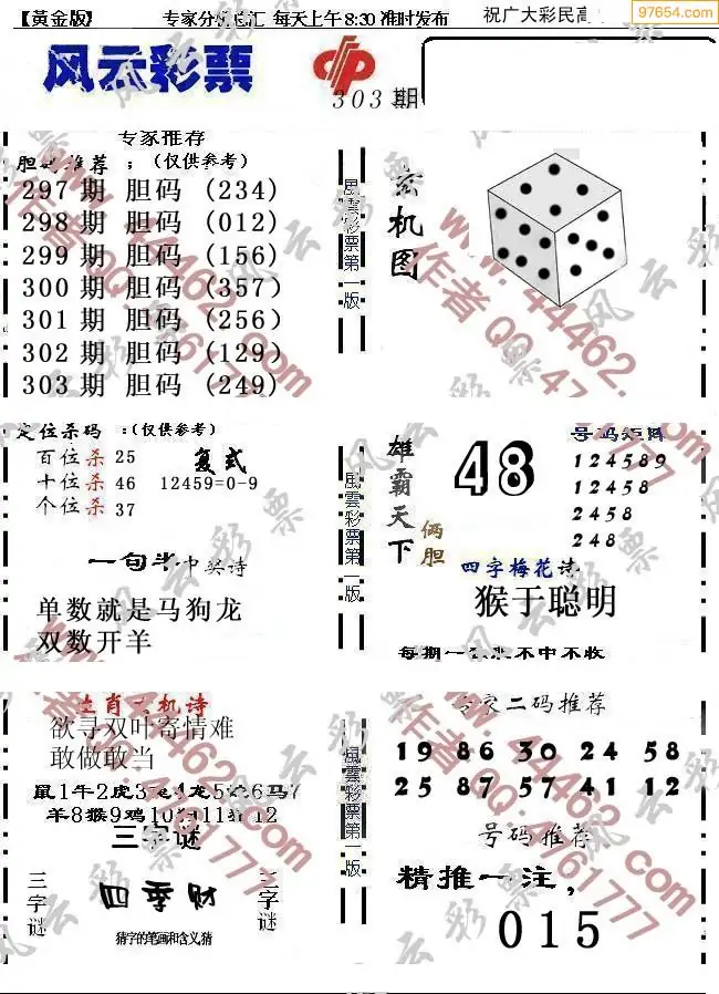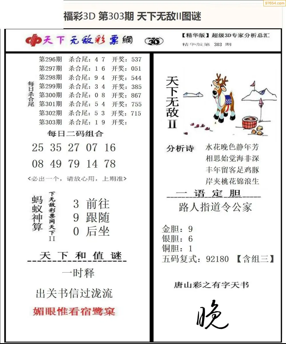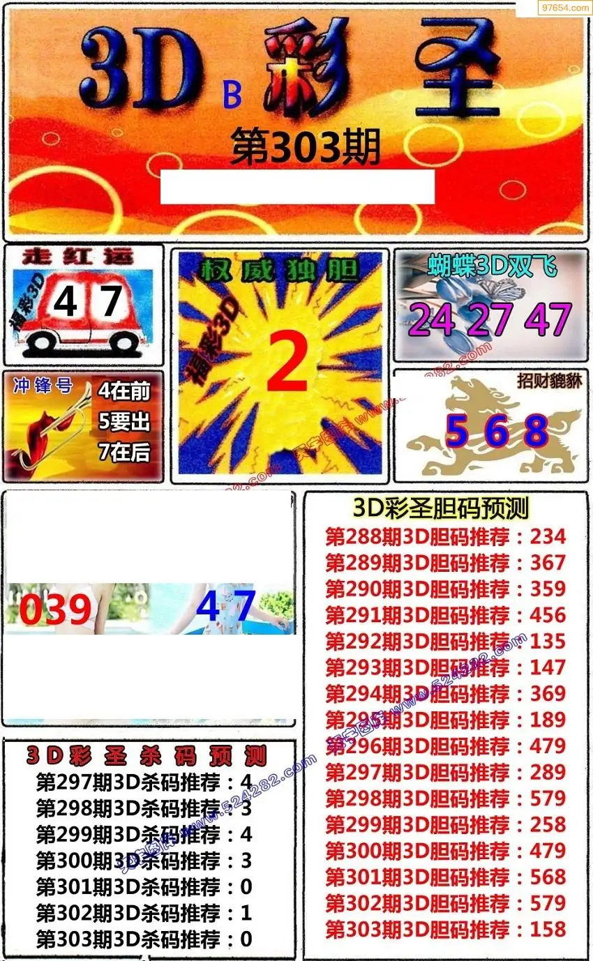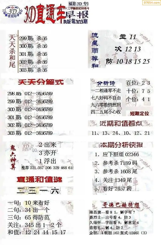 (8)25年303期今日3d各类彩报汇总