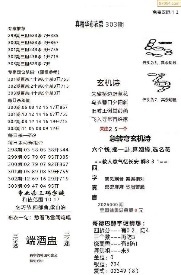 (5)25年303期福彩字谜图谜总汇