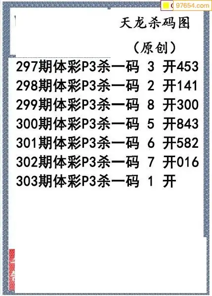 25年303期天龙体彩P3杀码图谜