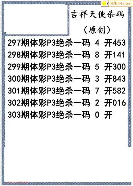 25年303期吉祥天使今日杀码图谜