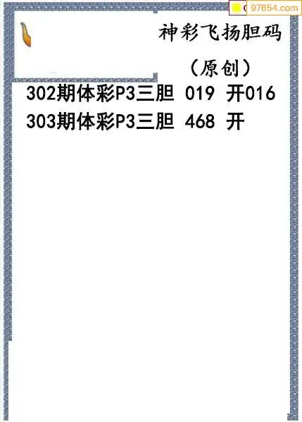 25303期神彩飞扬体彩P3三胆图谜