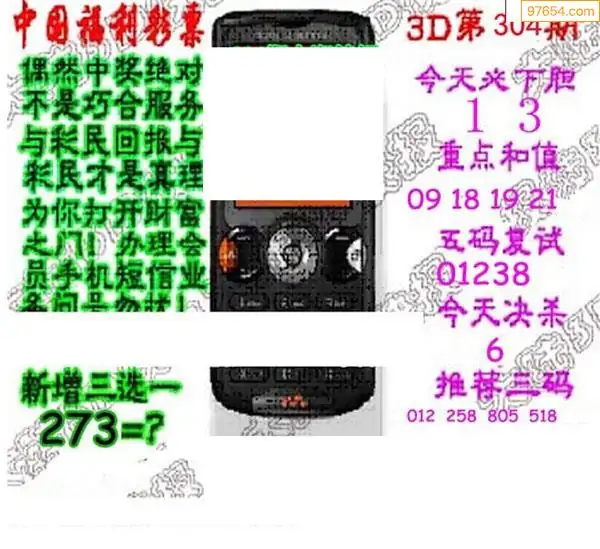 25304期福彩3D正版天宇和值谜