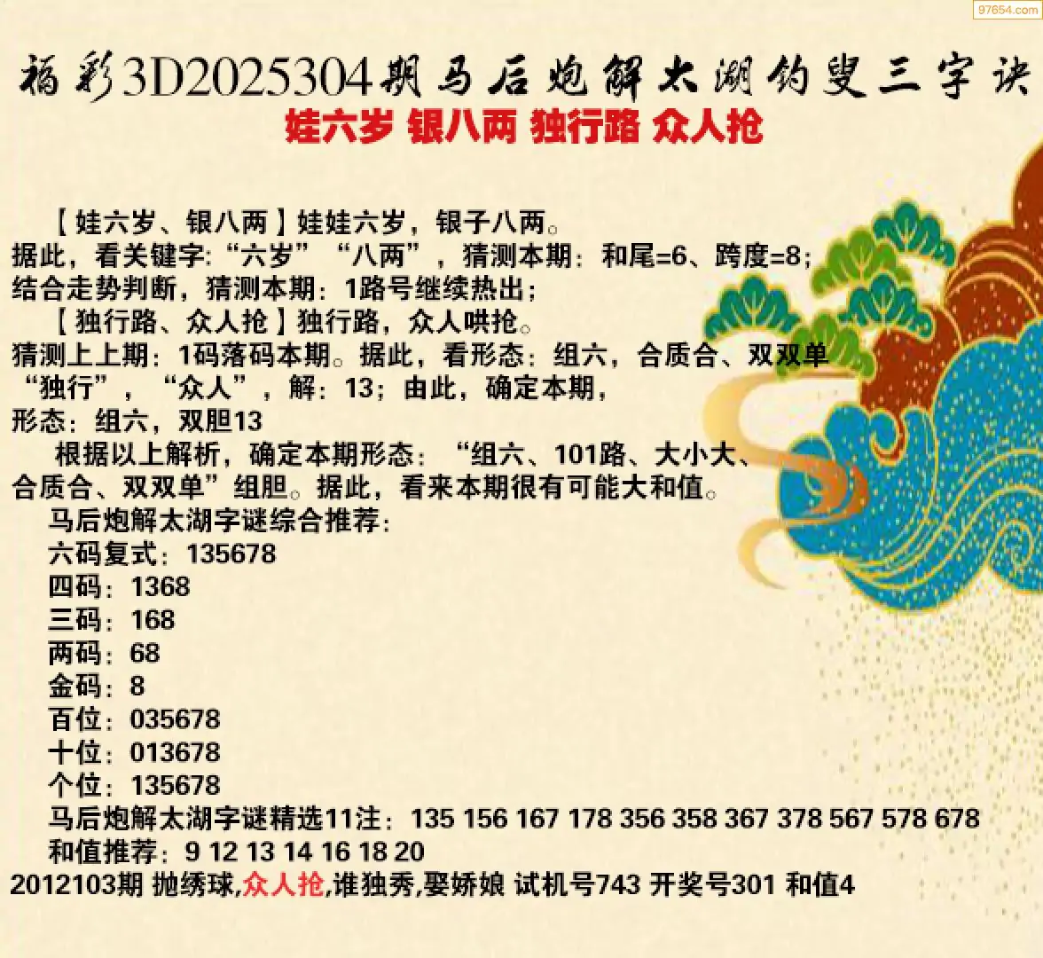 25304期福彩3d太湖钓叟三字诀历史汇总