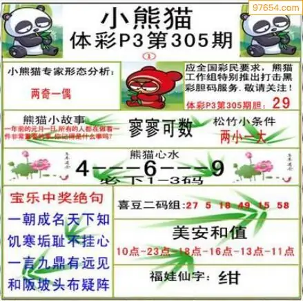305期清清漫玄系列体彩p3图谜