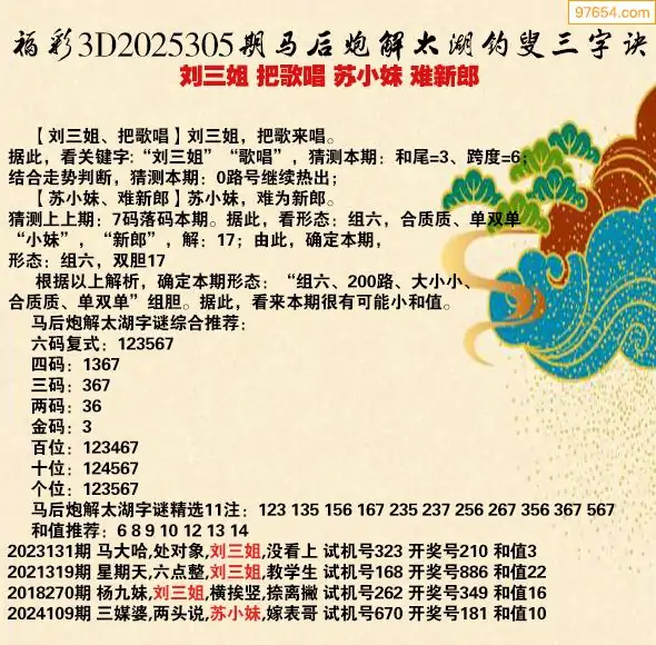 25年305期马后炮解3d太湖钓叟之 刘三姐