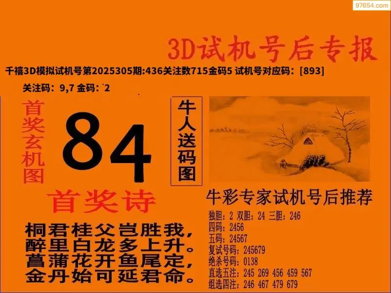 25年305期3d试机号后晚间字谜汇总