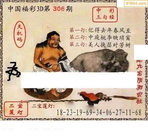 25306期福彩3D正版天宇和值谜