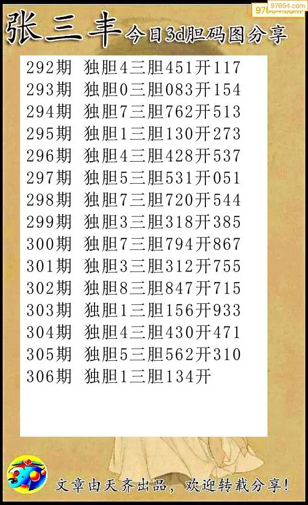 2025306期彩彩网3d原创图迷搜集(天中整理)