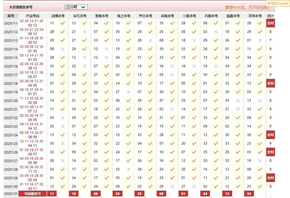 131期大乐透彩经十大专家前区杀号汇总